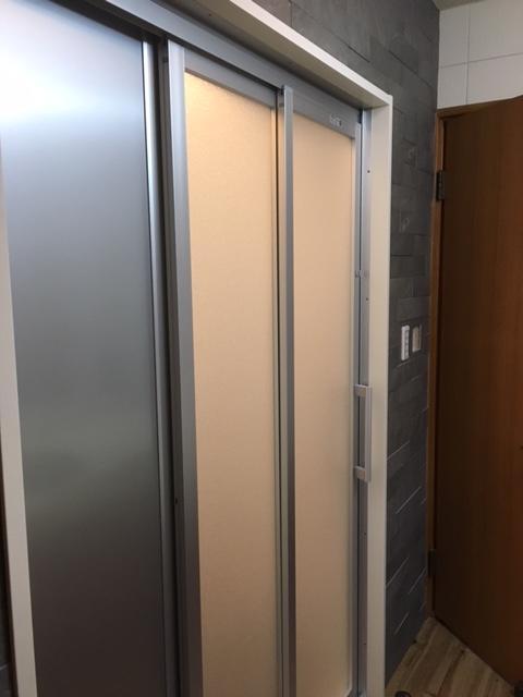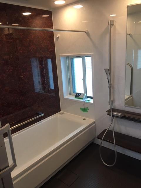 在来浴槽でかなり大きな浴室でした。窓も大きく冬場は寒かったそうです。ユニットバスをTOTOサザナのワンランクアップのプレミアムをご選択されました。サイズは1620です。窓も撤去し、外壁にして小さい窓を設置しました。樹脂製のルーバーを取り付けて外からの目線防止や防犯も兼ねております。ガスのカワックを設置され大きな浴室でも寒さ知らずです。梅雨時期の洗濯物にもご活用いただけます。洗面所側はスタイリッシュな2枚引戸を設置され壁を通常はクロス貼る事が多いのですが調湿効果のあるエコカラット(LIXIL)を貼りました。こちらもとてもおしゃれで格好の良い素敵な仕上りになりました。