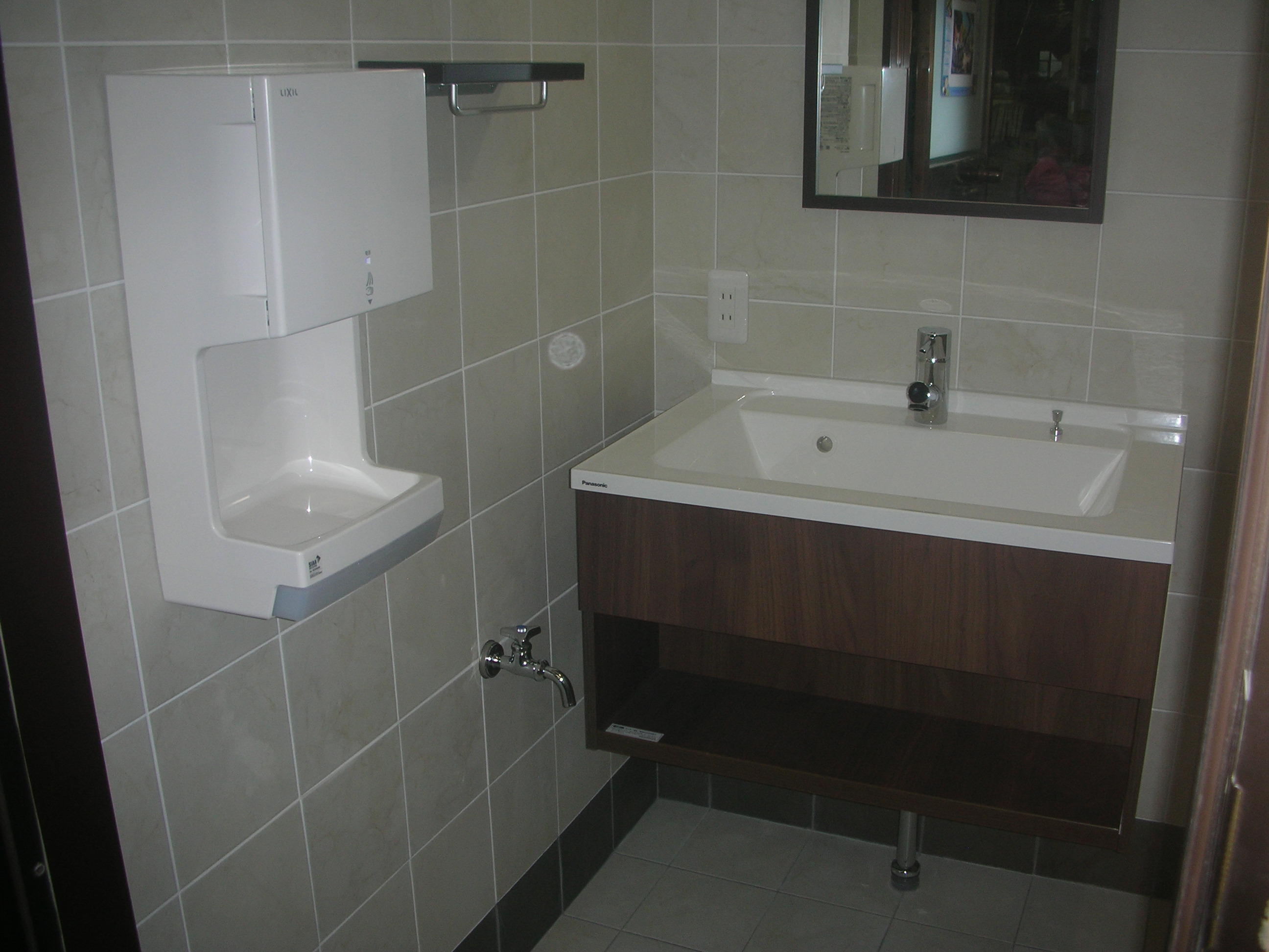 工場内の男女兼用トイレを女性専用に改装したいとのご要望。ゆったりとお化粧直しも出来そうな、女性に優しいトイレに変身です!