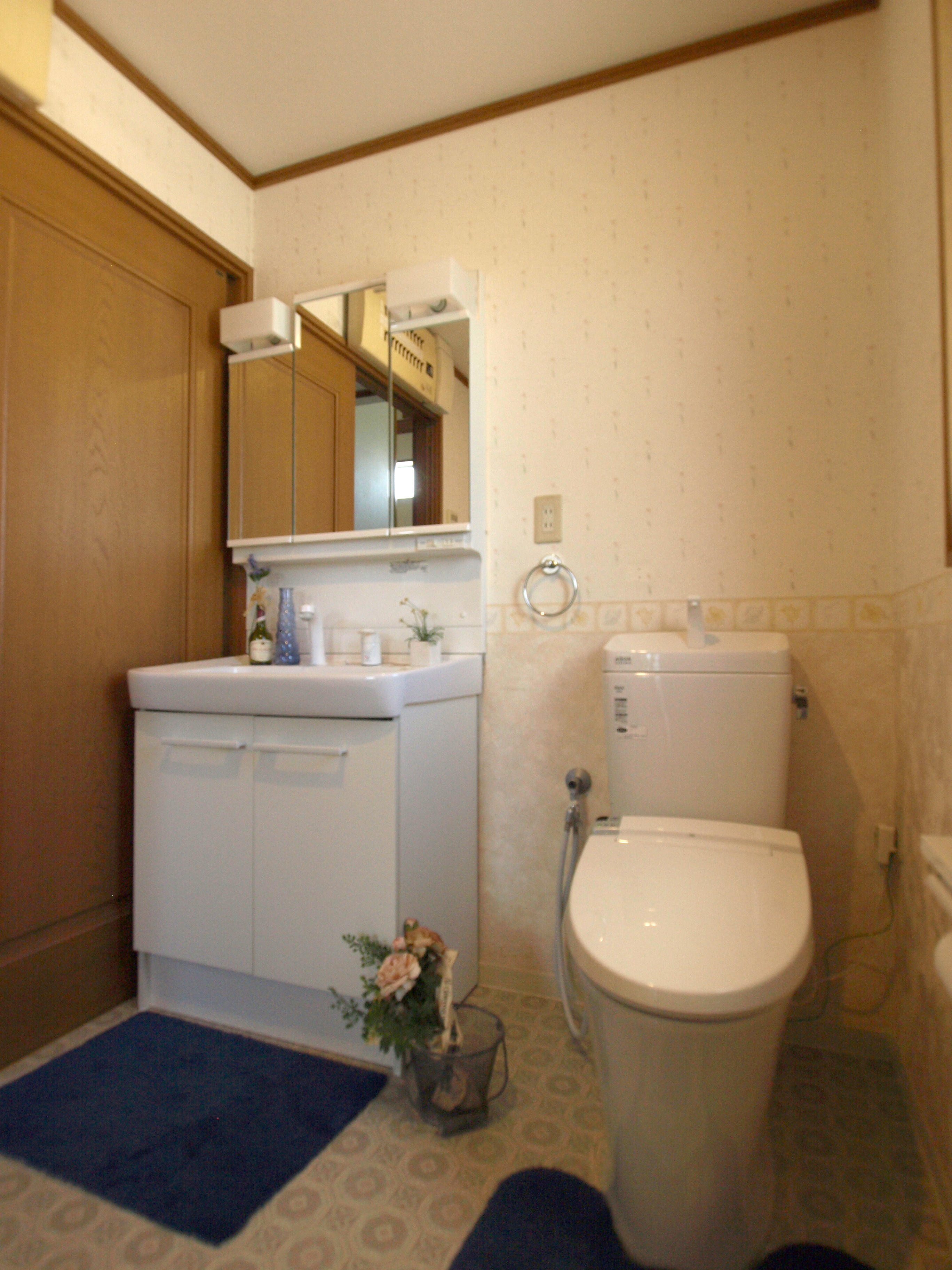 水廻り設備の老朽化でご相談をいただきました。洗面台、便器も同時に施工。気持ちのよい空間になりました。