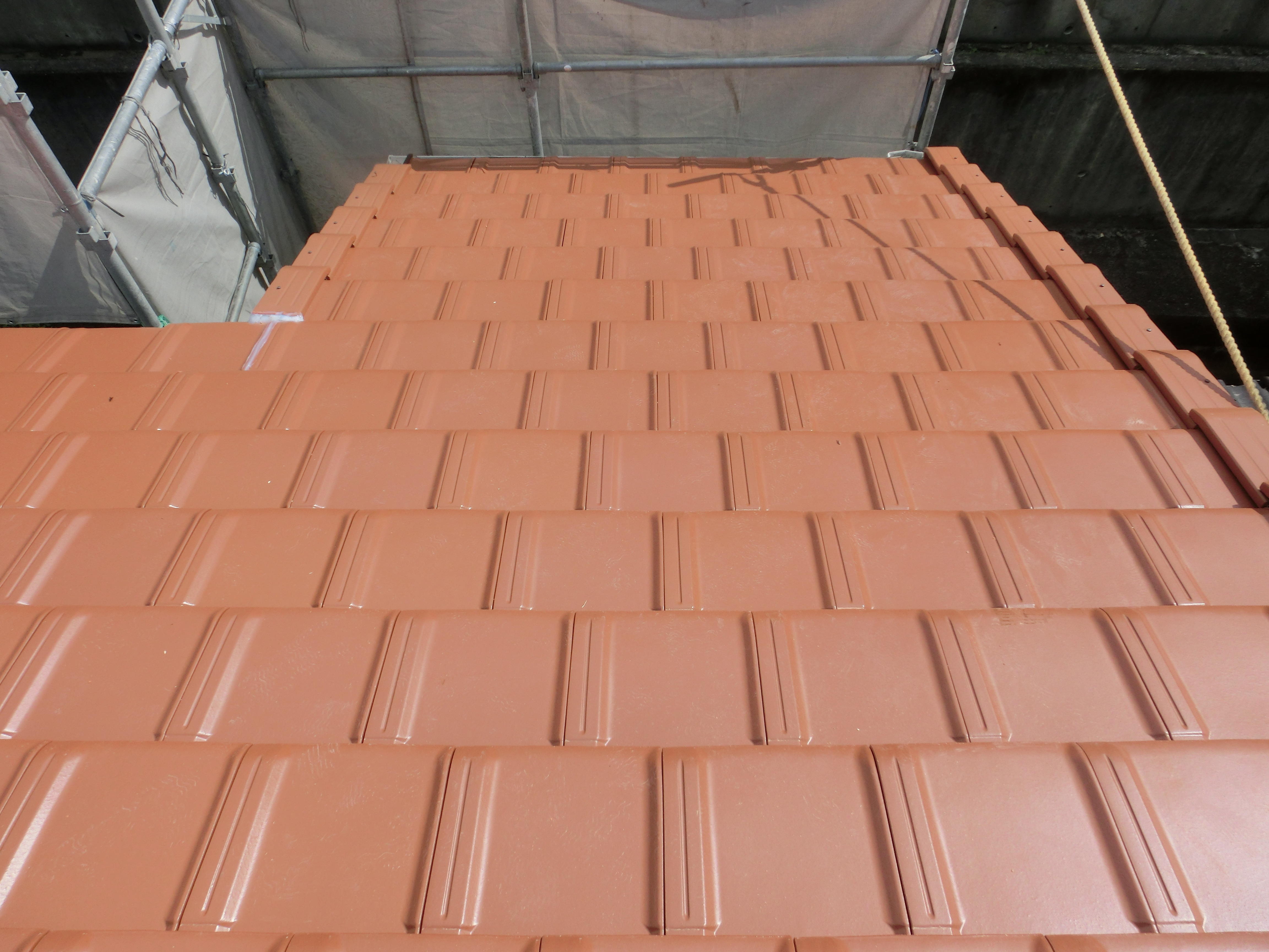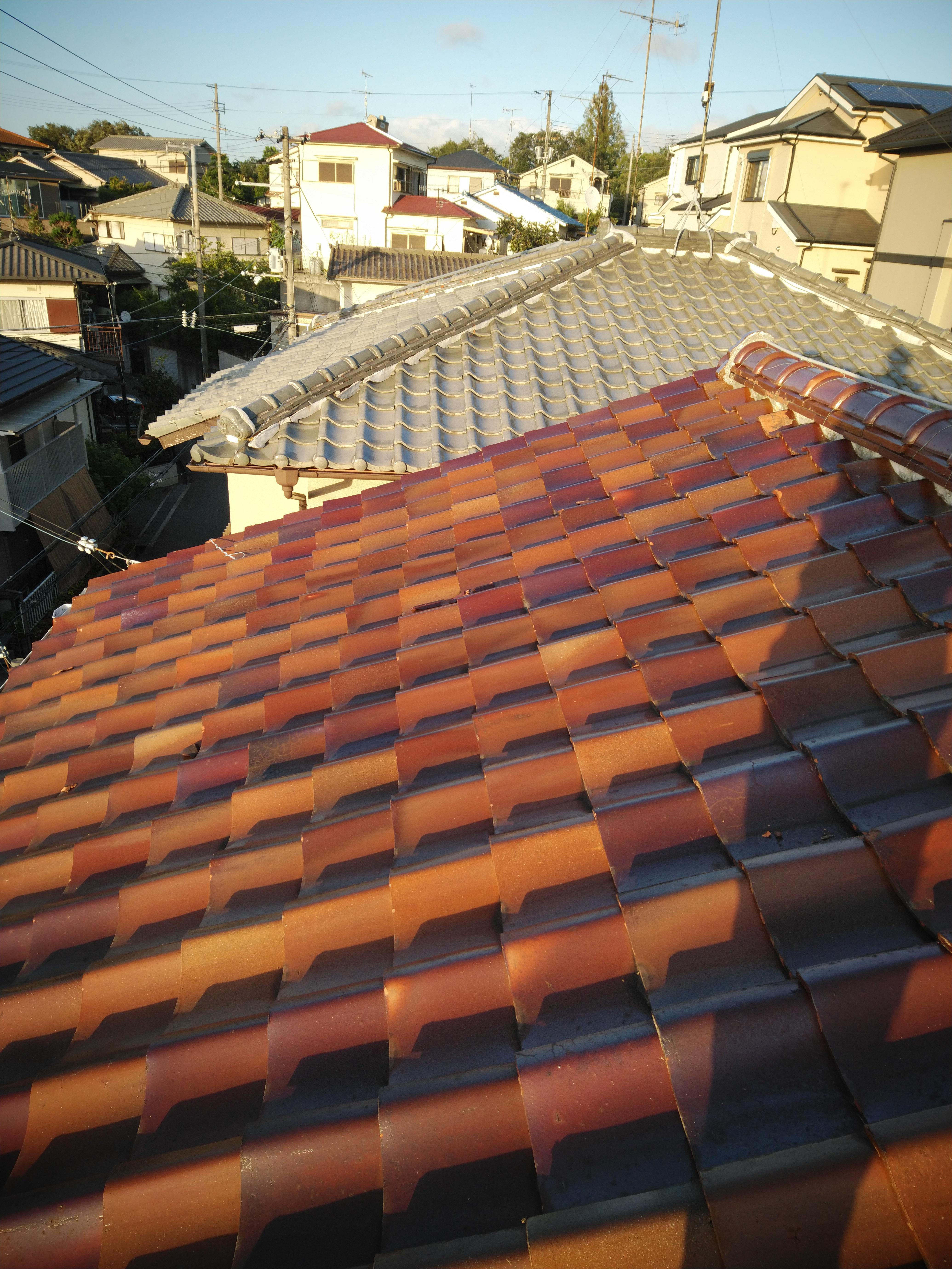 施工前は塩焼瓦でした。三州発祥で焼き上げ途中に塩を入れて強度を強めたそうです。でも凍て割れが多く、今回葺き替して頂きました。屋根葺き替え工事は、山土と瓦を撤去して、新しい三州の平板瓦を葺きます。 上った時ガシャガシャしいてた屋根もガッチリ、完璧です。 すっきりとしたデザインで高級感もある屋根に仕上がりました!