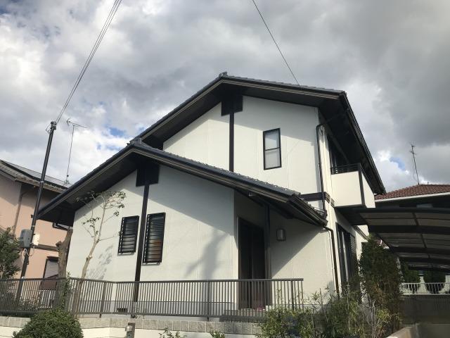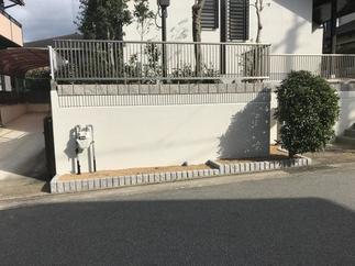 外壁と外構を工事させていただきました。植栽も間引いてすっきりとした外観になりました。