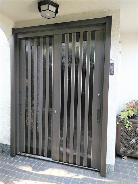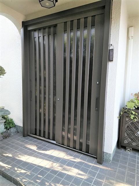 玄関引戸がすべりが悪くなったとのご相談でした。同じような雰囲気の引戸にお取替。一日で完了し、お喜びいただけました。