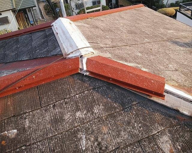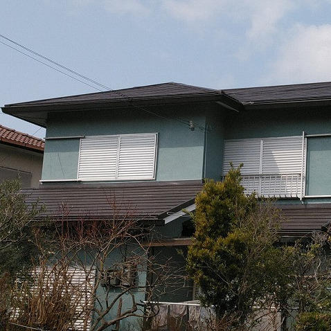 台風の影響で、樋や大屋根の棟が飛んでしまい補修工事の御依頼を頂きました。屋根はガルバリウム鋼板を重ね葺き、外壁、軒天、樋もやり替え、これで安心して過ごせますね。