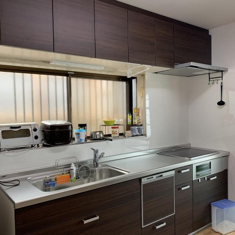 各部屋の天井がジプトーンでしたが、この機会にクロス仕上げに変更しました。キッチンも食洗機付きで家事もラクラクです。洗面所床が一部劣化していましたが、今回綺麗に補修しクッションフロア仕上げにしています。