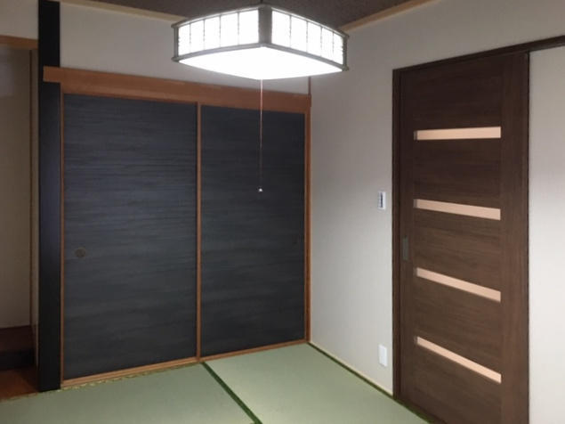 和室8畳を→6畳に、廊下も縮小し、リビングを広げました。結果、物入収納が2ヶ所設置出来ました。