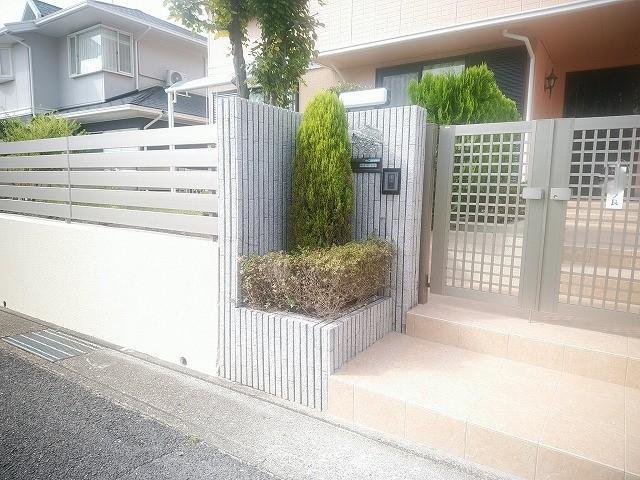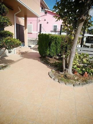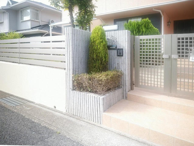 屋根、外壁の塗装、外構に関してのご相談でした。目隠しの生垣もメンテナンスが 大変とのこと。完成予想パースを作成し、打合せさせていただきました。 外壁は温かみのあるカラーに変更。パッと華やかになりました。 門廻りの床タイルを貼替、そのままお庭まで張りのばしました。 生垣は撤去し、代りに目隠しにもなるフェンスを設置。 とてもすっきりした外観になりました。メンテナンスも楽になりますね。
