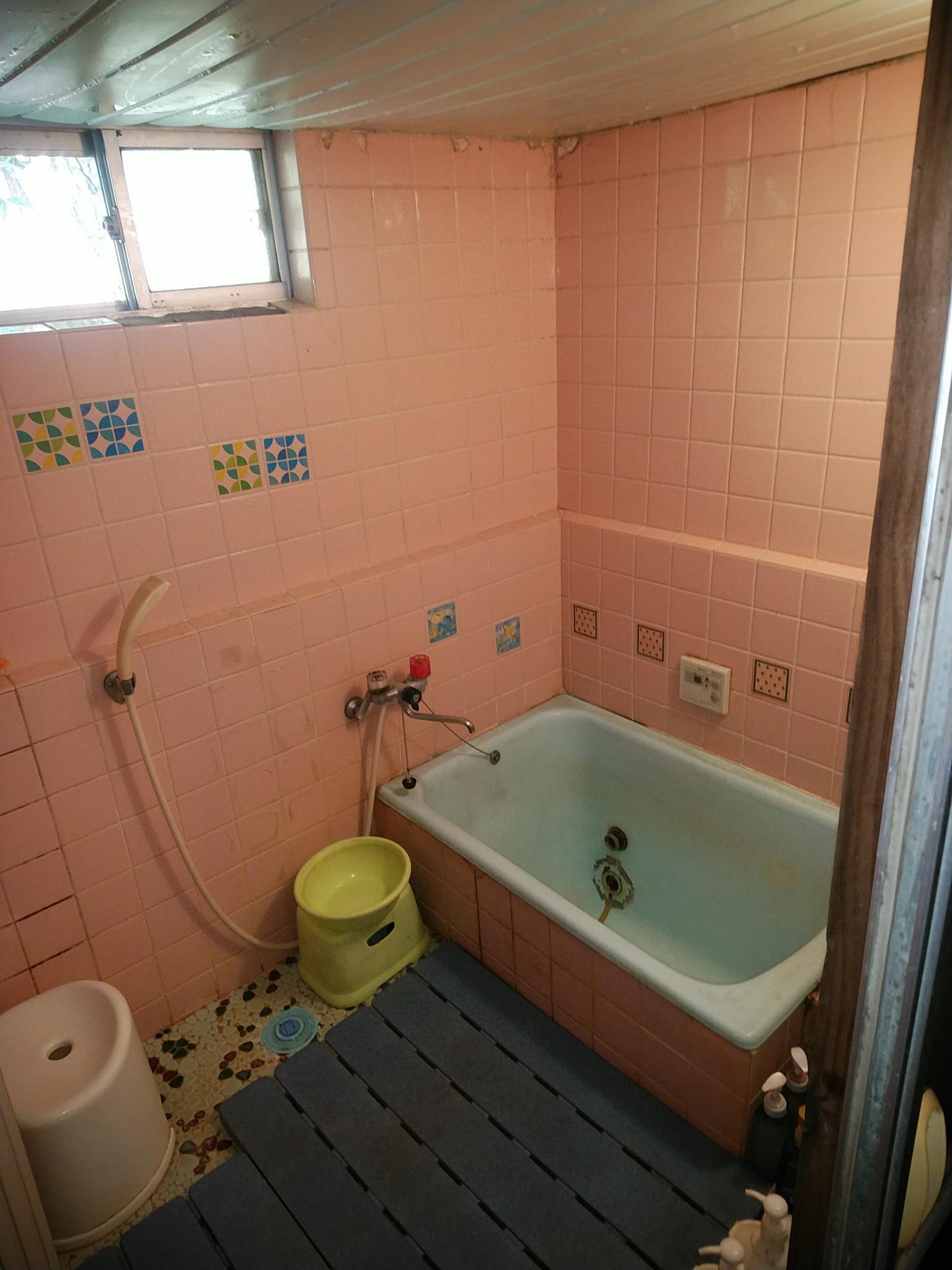 増築部分にブロックを積み上げたタイル張りの在来工法の寒い浴室でした。