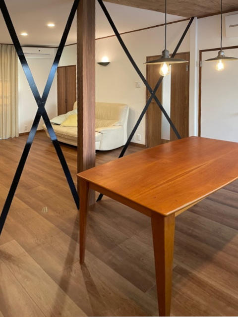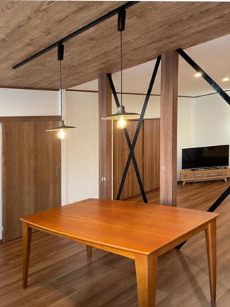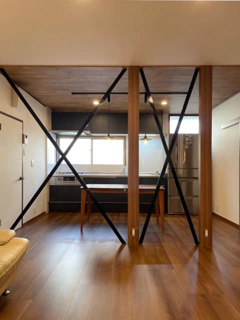 台所とリビングが壁で分かれており、撤去して広くする予定でしたが、筋交い(耐震性を高める部材)が入っており、残すしか手段が無くなりました。