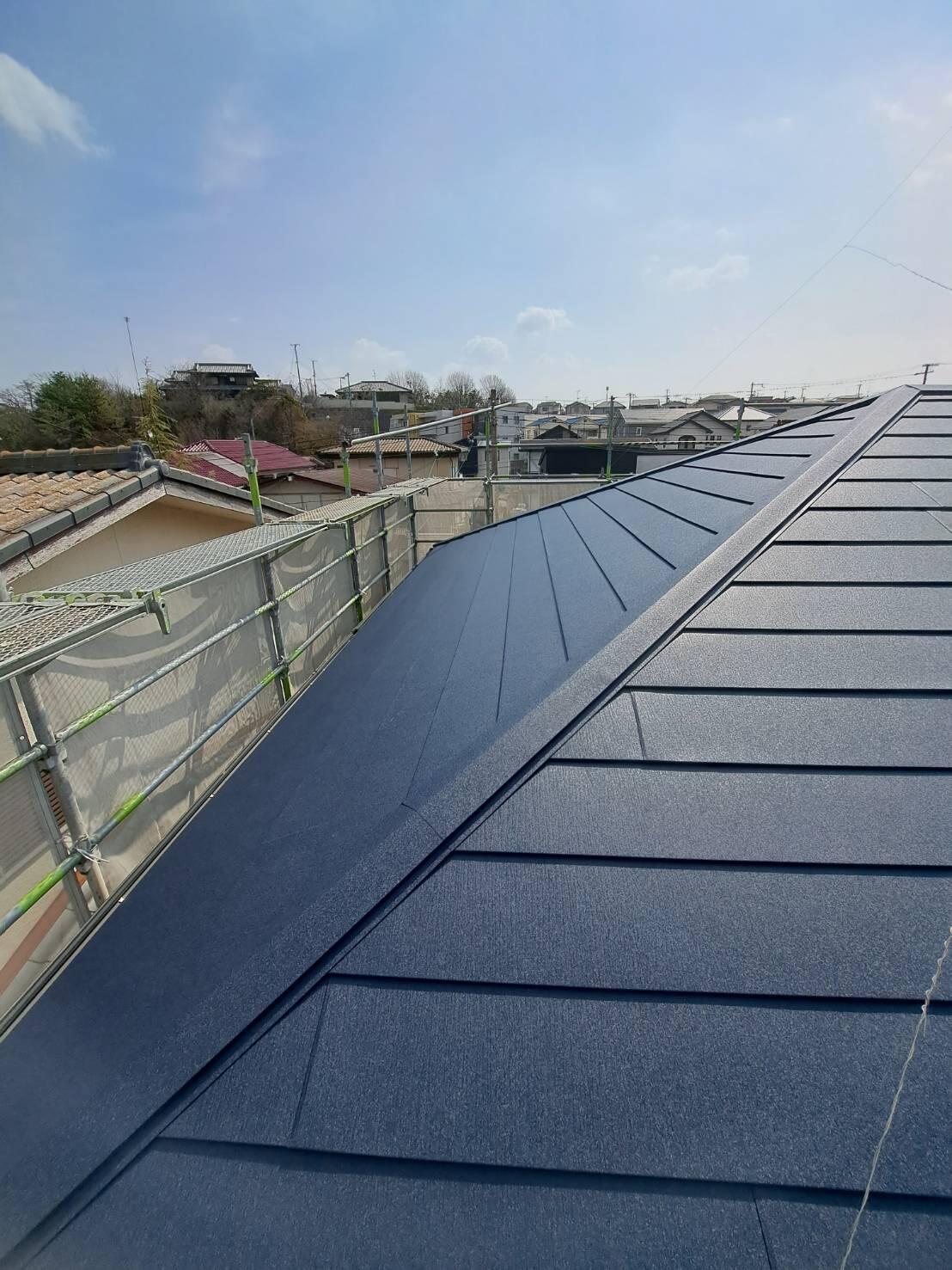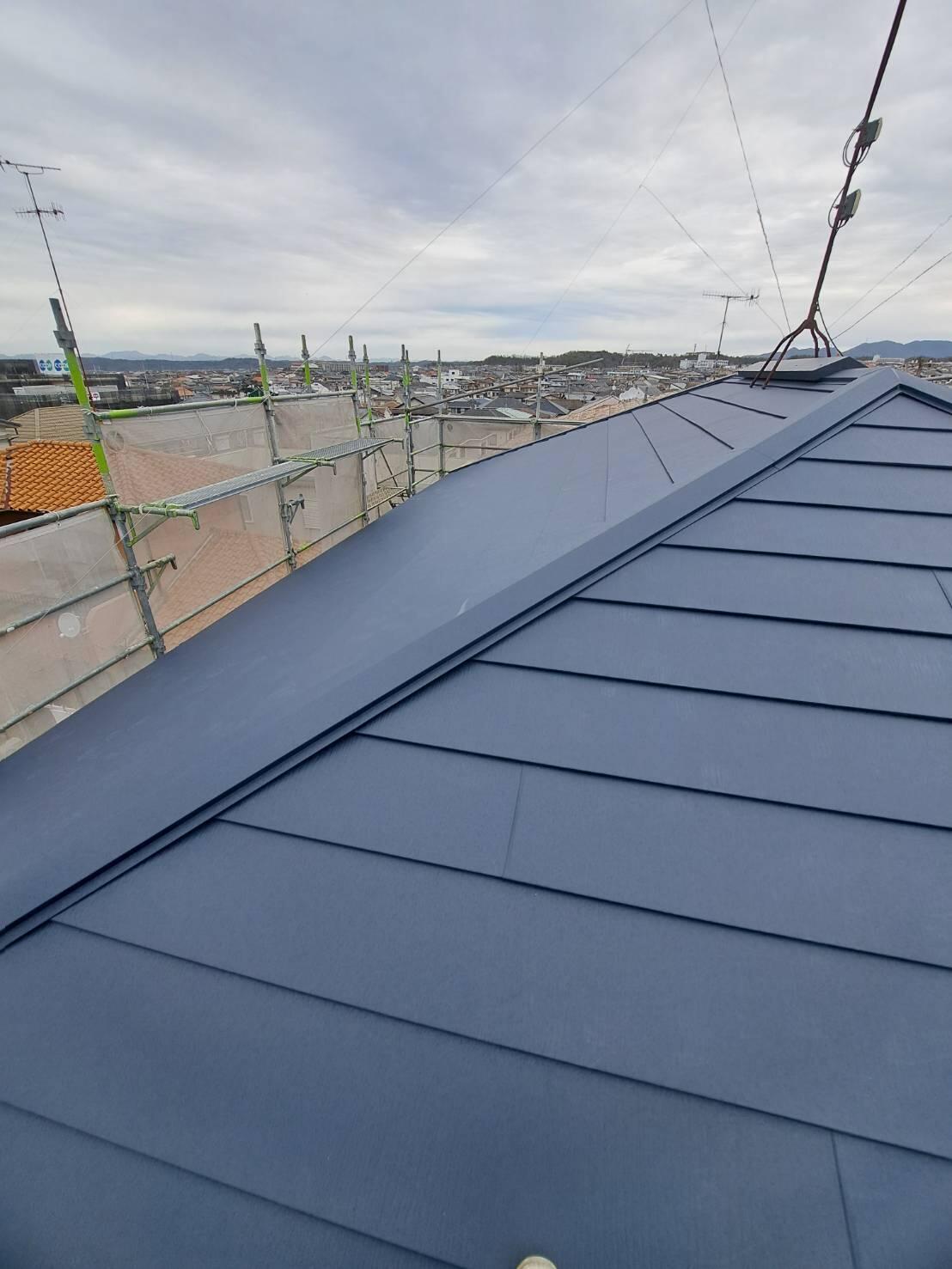 外壁塗装と、屋根の重ね葺き工事の御依頼をいただきました。 屋根は塗装の選択肢もあったのですが、既存の上から重ね葺きをすることになりました。 重ね葺きすることにより、断熱性能がアップします。 見た目の印象も一新して気に入っていただけました。 屋根、外壁は家の寿命に関わる大事な部分です。 お早目の点検、メンテナンスをお任せください!