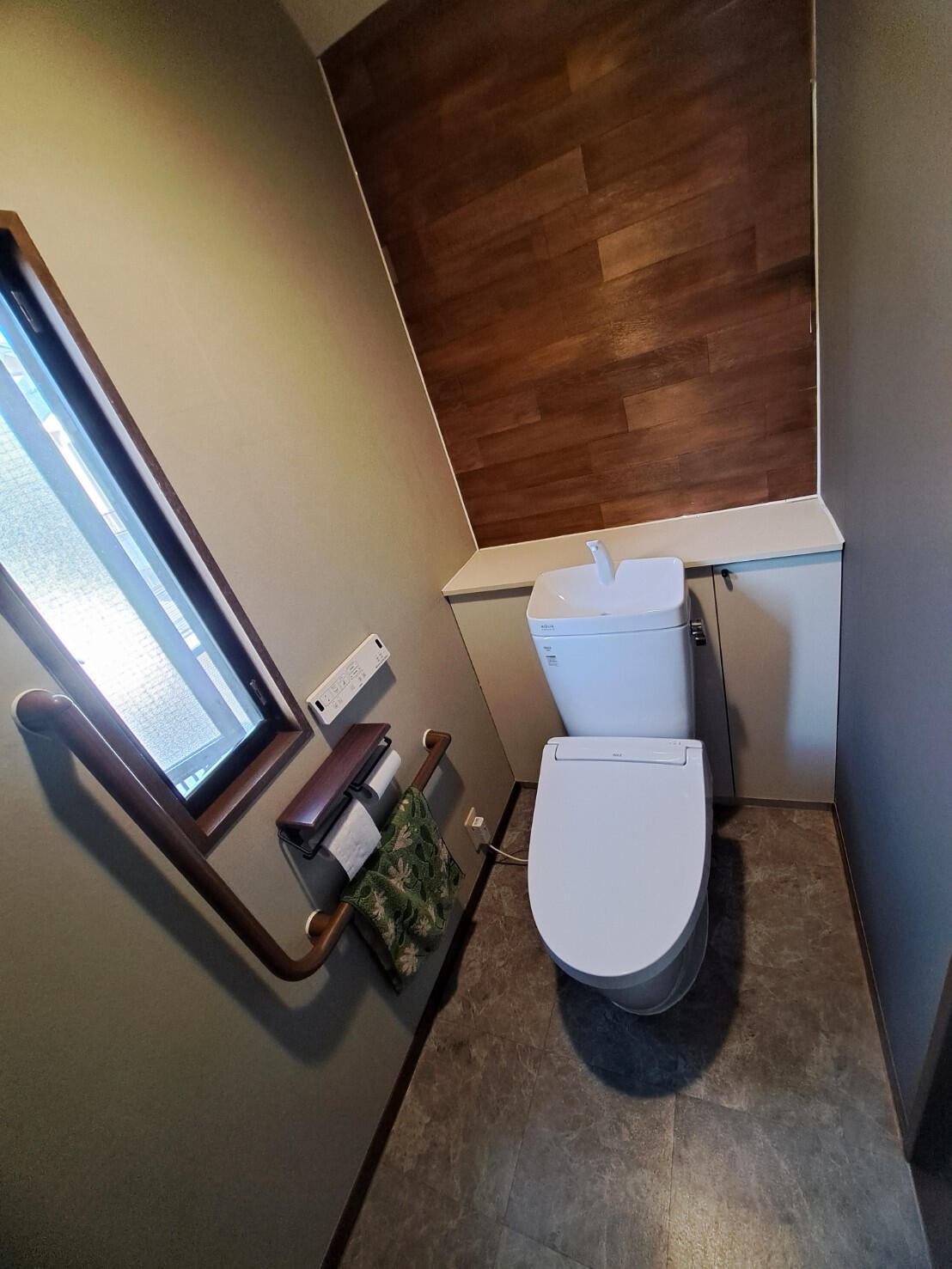 水回り設備機器の交換と車庫拡張工事のご依頼をいただきました。 門扉とガーゲート、ポーチを撤去し、車が2台駐車出来るようにしました。 トイレの内装はお施主様が施工されました。 とても器用に施工をされて、センス良く仕上がっていますね。