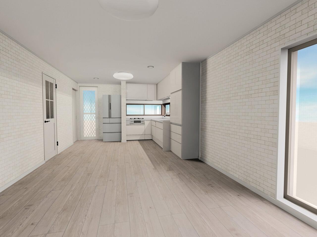 キッチンと和室の間にある袖壁や垂れ壁などの間仕切りを無くすことで、開放感のあるLDKにしたい。