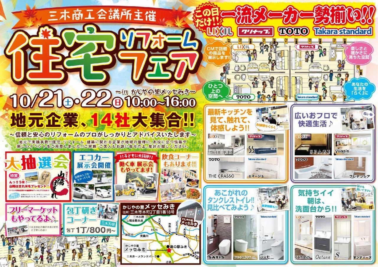 ふたばリフォームは道の駅三木隣接、「かじやの里メッセみき」にて行われる『~三木商工会議所主催~ 住宅リフォームフェア』に出展いたします!