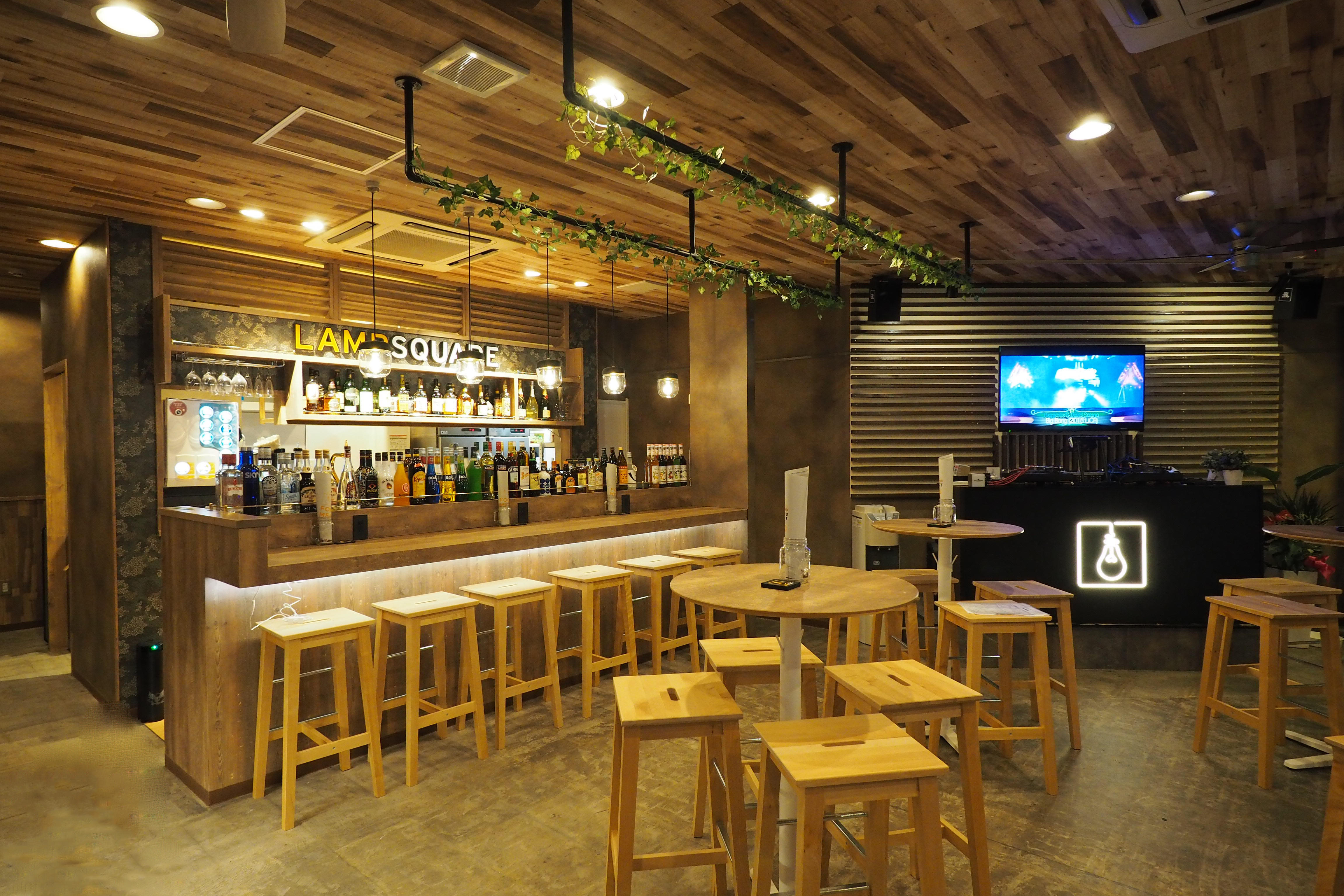 久留米の1番街にOPENした【CAFE&BAR LAMP SQUARE】様の店舗改装をさせていただきました。店内には大型プロジェクターやDJブースが完備されています。ぜひ足を運ばれてください♪