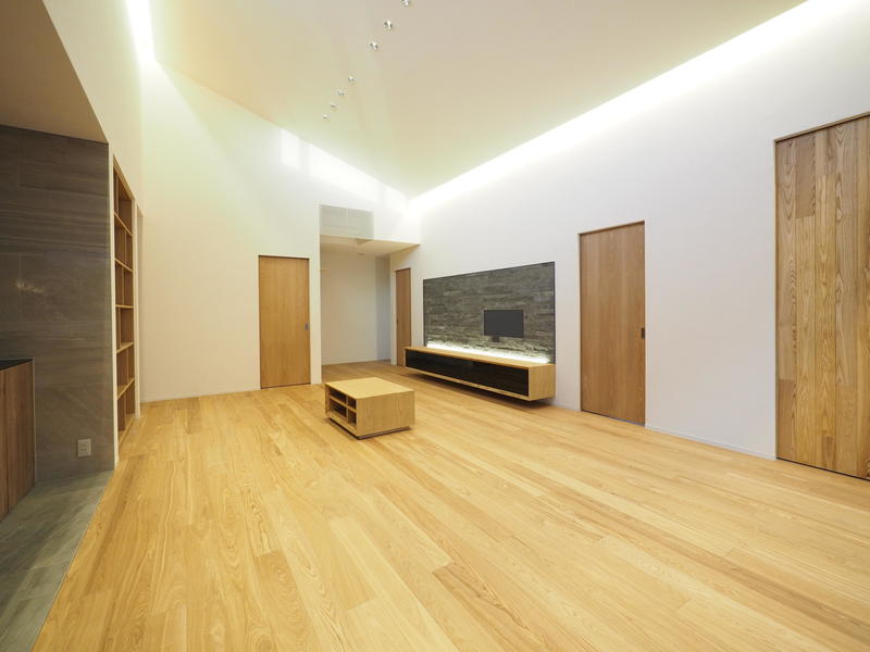 家族の集まるLDKは温水式床暖房を設置し快適に、湿気
