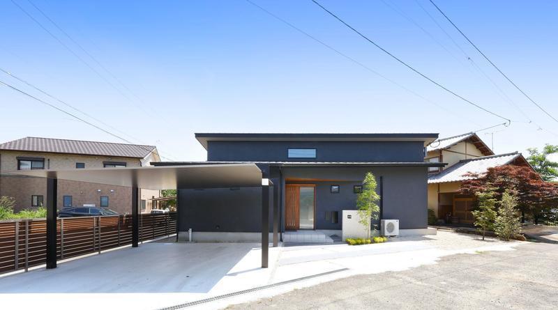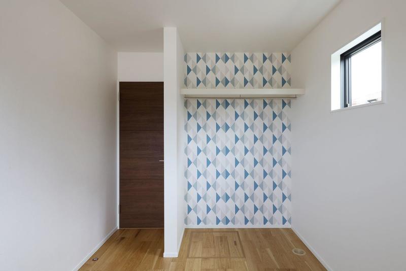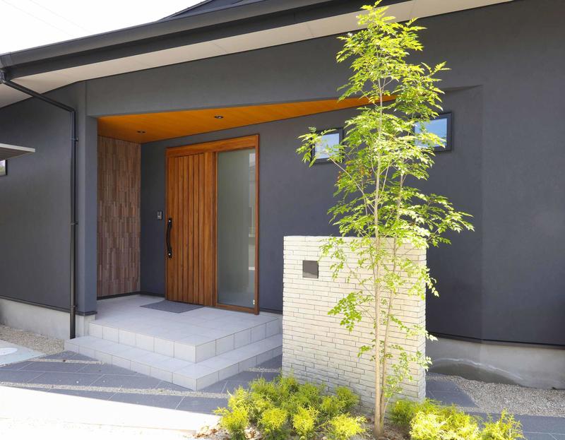 で仕上げ、アクセントで玄関横にはタイルを使用。
