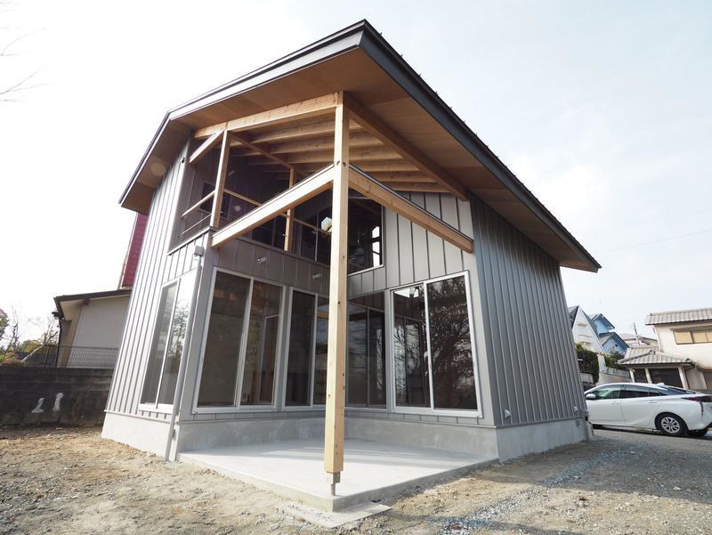 ガルバリウム鋼板の外壁が特徴的です。ガルバリウム鋼