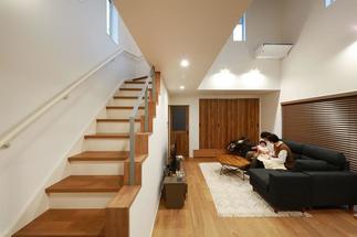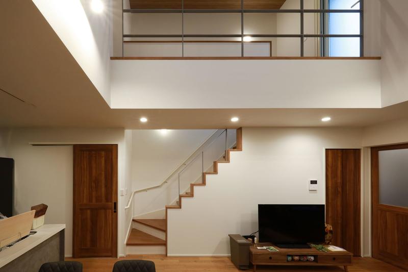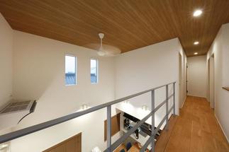 住居部分は、階段と廊下と吹抜けで空間に変化をもた