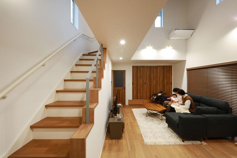 せました。リビングから見上げると、こだわりのグレ