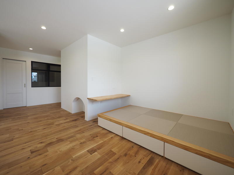 家族が集うリビングの畳スペースは、宿題をしたリ本