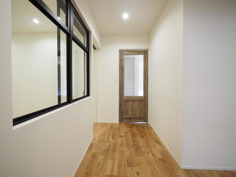 ほどよくレトロ感もあるガラス入り室内ドアと、全体