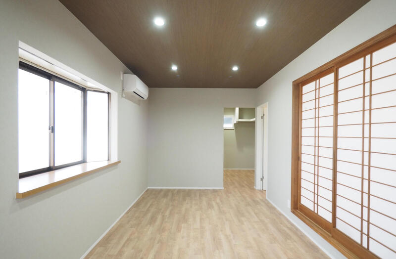 内部の建具を交換すると同時に段差の解消もしました。また2階の浴室とミニキッチンは撤去し、押入れだった収納と浴室だった空間を繋ぎウォークインクローゼットに。