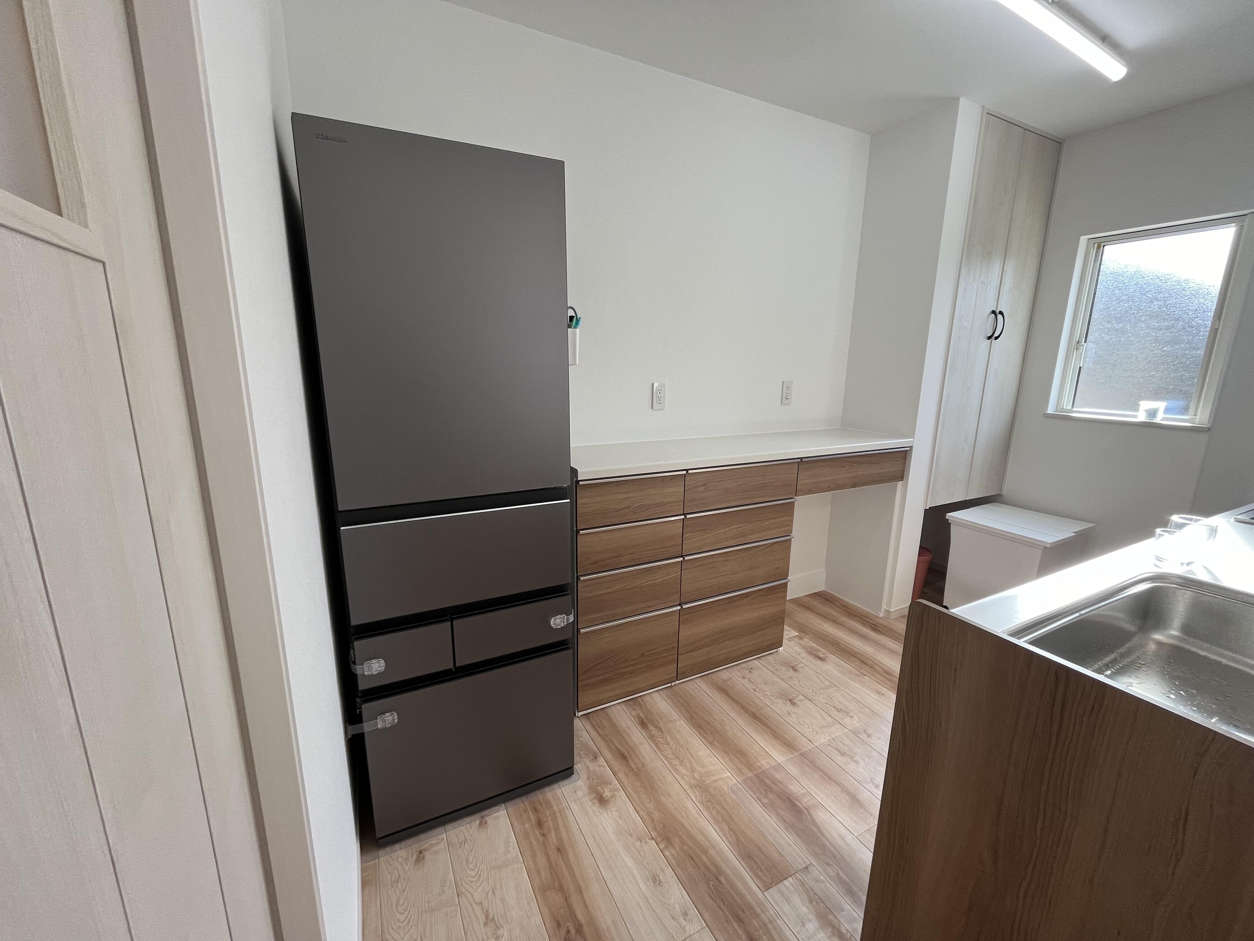 新築戸建てをご購入されたお客様より、キッチン収納の設置をご相談いただきました。 お選びいただいたのはLIXILの「ノクト」です。 45ℓのごみ箱2つが収まるダストスペースが必須というご要望でしたので、下部をオープンにした機能的な収納を実現してします。