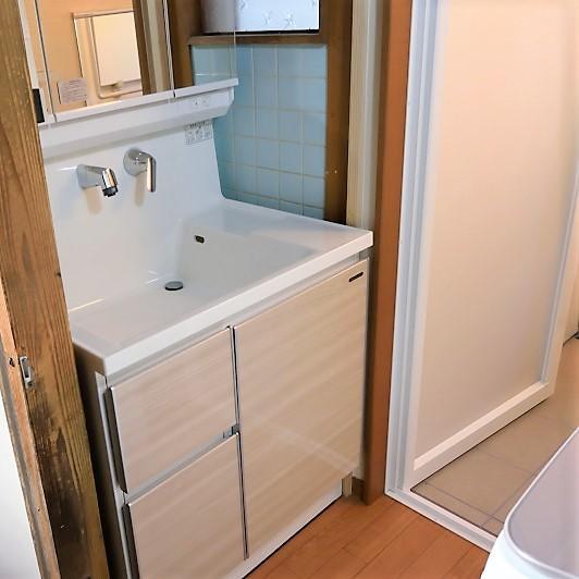 間口と奥行をオーダーすることが出来るタカラスタンダードのぴったりサイズを採用いたしました。お風呂の水栓はサーモスタットになり、カウンターがある為便利です。窓もルーバー窓へ変更し、雨の日でも窓が斜めなので換気でき、そして角度をつけておけば換気していても室内見えないで済むようになりました。