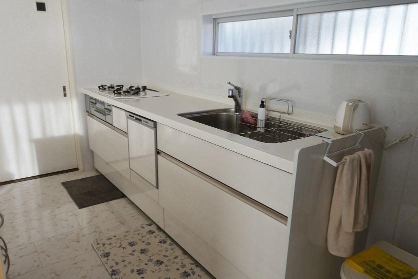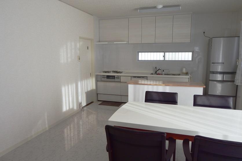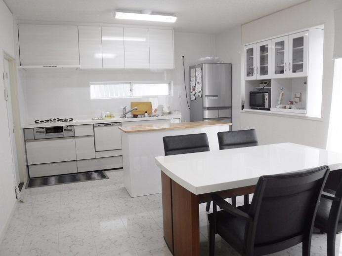 フロアとキッチン、家具が白で統一されており、高級感のあるダイニングキッチンとなりました。家具加工のアレンジを依頼されたりなどお客様のこだわりも詰まったお気に入りの場所になったのではないでしょうか。