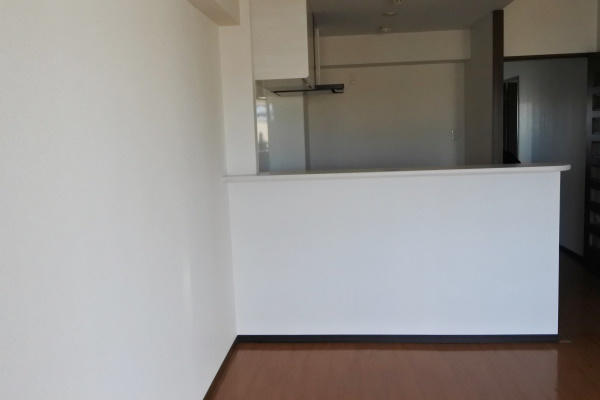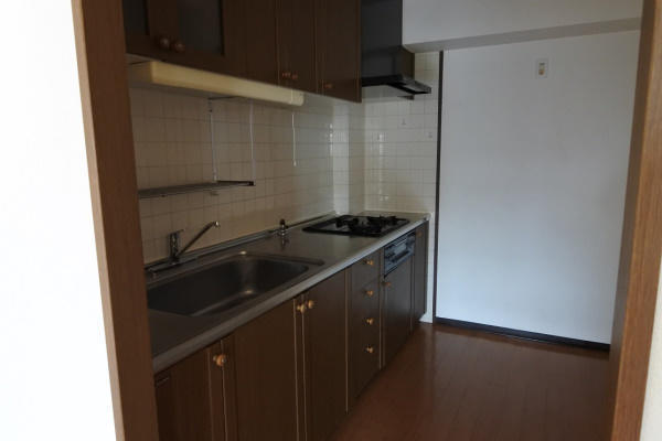 キッチンはリビングダイニングと分離されていました。圧迫感があり電気が無いと暗いです。