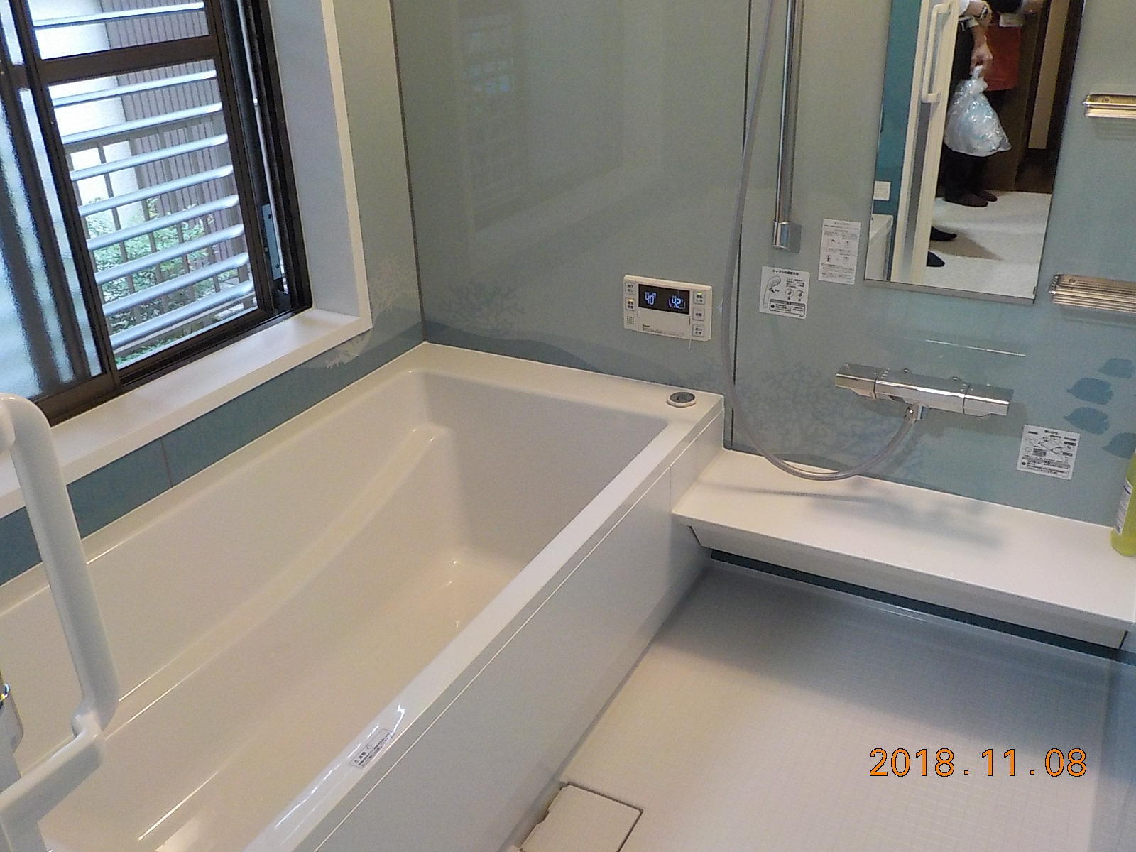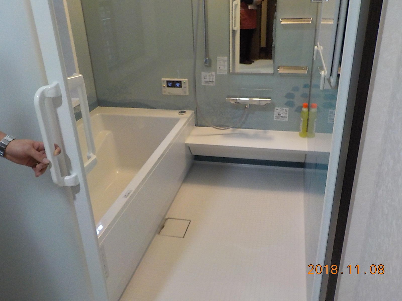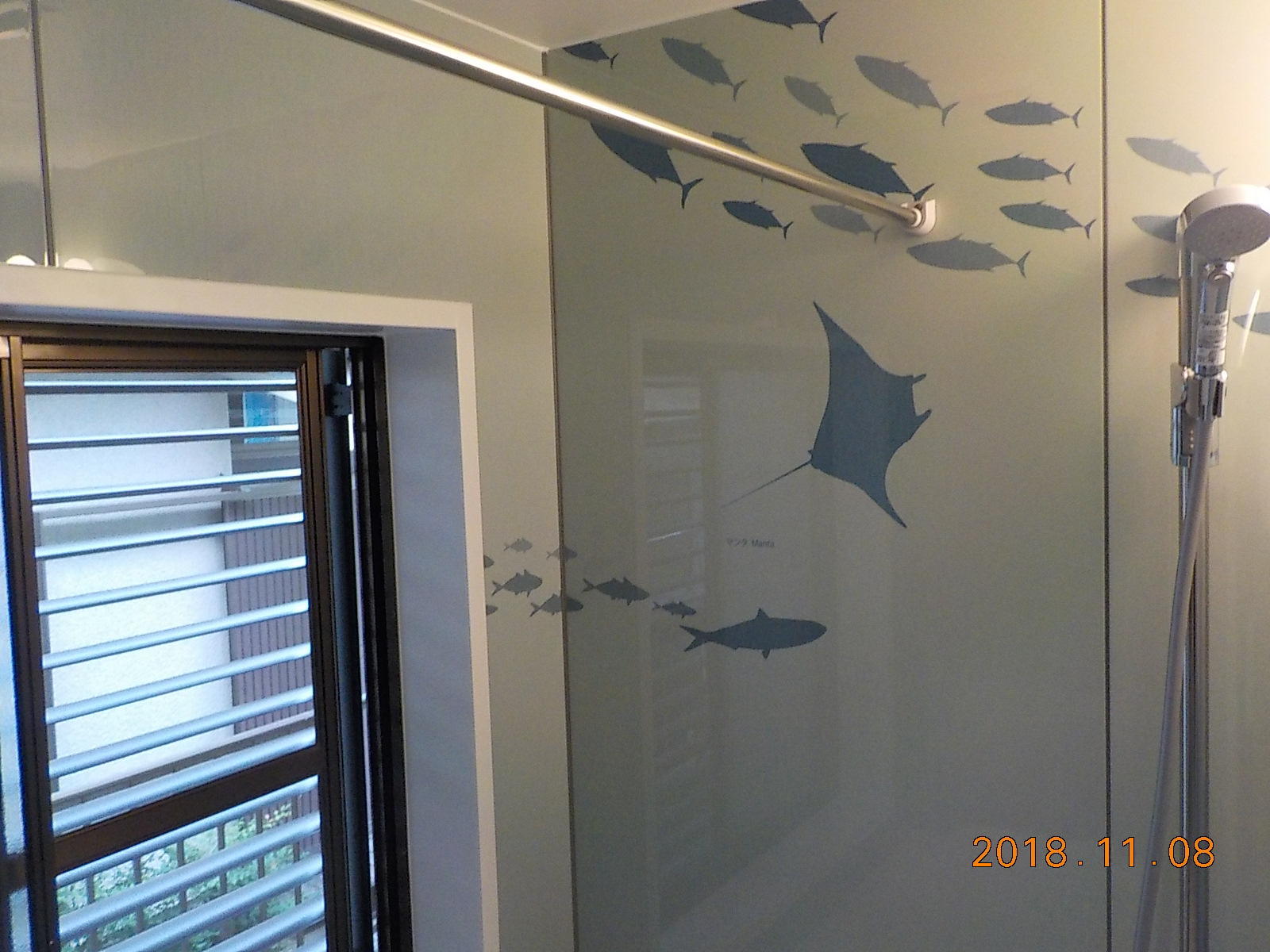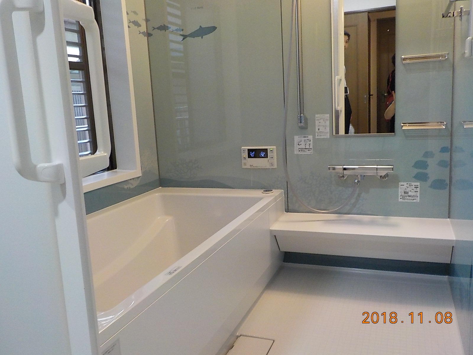 豊富な柄や色を揃えたウォールデザインが特徴のノーリツのユパティオ。まるでお魚さんと海の中で泳いでるような可愛らしい浴室が出来上がりました。このデザインならどんなお子さんもお風呂好きになるのでは無いでしょうか♪自動で浴槽を洗ってくれるおそうじ浴槽機能付き!