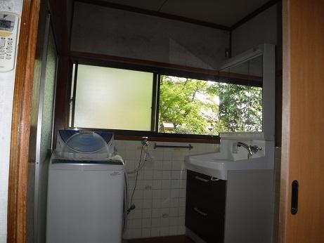 窓を小さくすることにより、洗面台が洗濯機と同じ向きで置くことが出来ました。こもりやすい空気を換気するために窓を開けても、面格子があるので安心です。洗面所は全てクロスに貼り替えています。浴室の入り口と洗面所の窓枠の色と洗面台の収納部分の色が近くて統一感がありますね。
