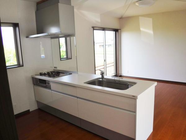 空間全体が、以前の閉鎖的な印象から、自然光をたっぷり取り込める窓を設置し開放的で明るい印象になりました!キッチンはどんなインテリアにもマッチするシンプルなデザイン!仕切りがないので調理しながらでもリビング側とやりとりができます♪作業スペースも広めなので毎日の家事が楽しくなりそうですね!キッチン LIXIL シエラ 採用