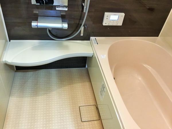 床も壁もオシャレで温かみのあるものになりました!浴槽も以前のものから取替えて、足を伸ばして浸かれそうなくらい広めになりました。