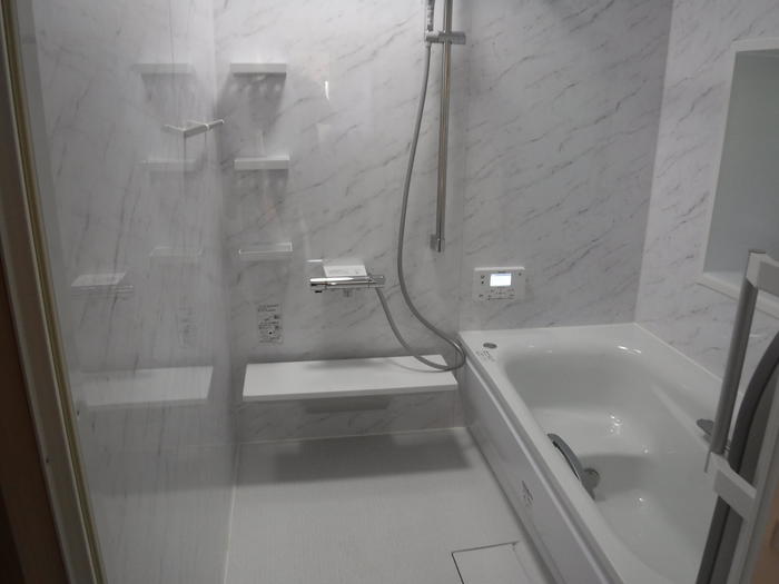 広々とした浴室へ大変身!浴槽は足を伸ばして浸かれるくらい大きいです。掃除のしやすさでも人気のTOTO サザナHSシリーズを採用しました!