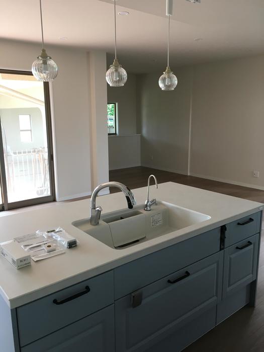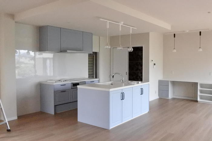 大きなキッチンを設置しても、ご家族で過ごす空間にまったく圧迫感を感じないくらい広々したLDK空間になりました。自然光も沢山取り入れられるので、パッと明るい印象です。
