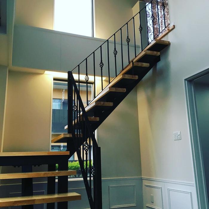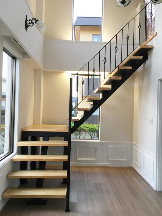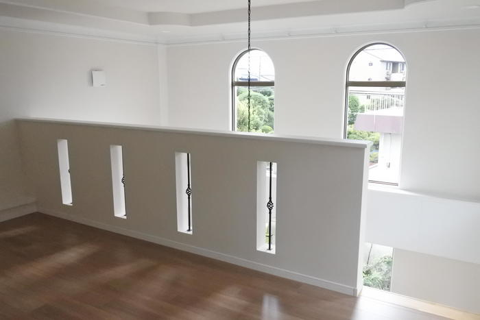 縦の空間を利用して玄関にロフトとそれに通じる階段を設置しました。