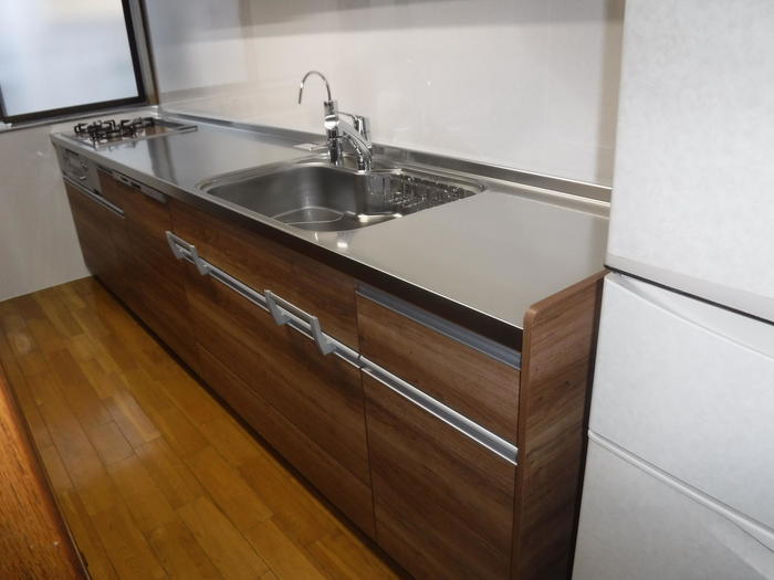 クリナップの人気システムキッチン「ステディア」を採用。毎日使う物なので、お手入れ楽々です。多くの方が気になる、換気扇のファンとフィルターを自動洗浄できる画期的な「洗エールレンジフード」シンクは水の流れに注目し、排水口までごみを運ぶ水路を計算し尽くた、汚れにくく、洗いやすいを実現する流レールシンクです。