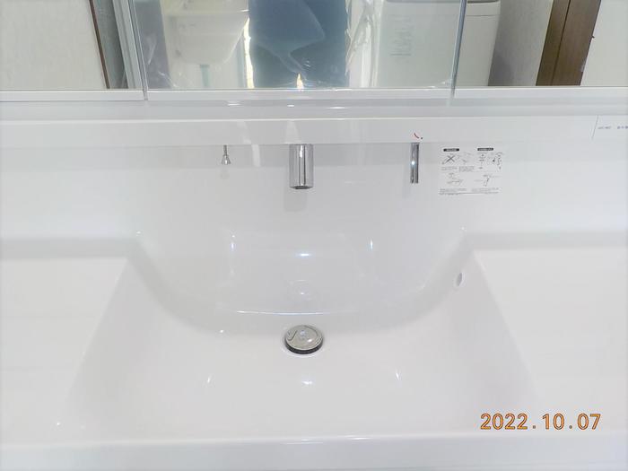 水栓が上部にあるので水栓の根元に水が溜まりにくく、掃除の手間が省けます。タッチレス水栓なので手に石鹸の泡が付いている状態でも水栓に触らずに流せます。