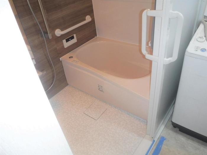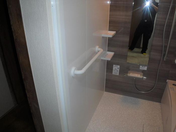 段差を解消しました。出入りの際の転倒を防げるので、どなたでも安心して入浴できますね。