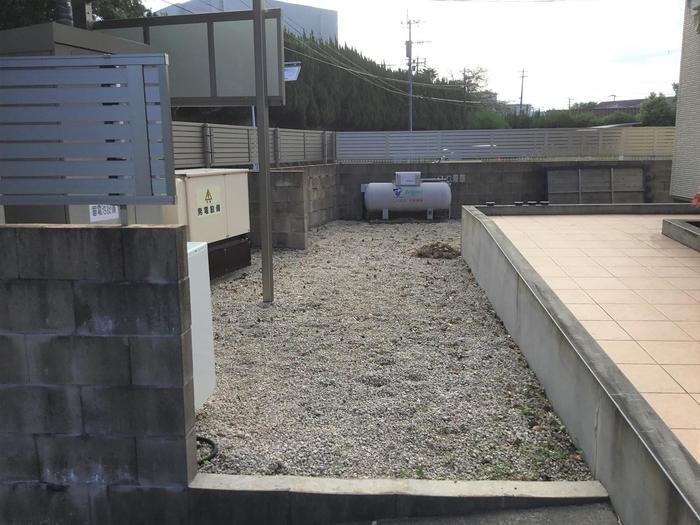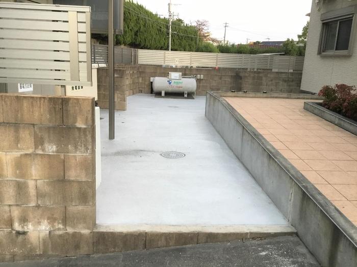 弊社ガス部門株式会社和泉プロパンの敷地内にある実証モデル住宅「愛エネハウス」の玄関前の砂利敷き部をコンクリートに変える工事を行いました。