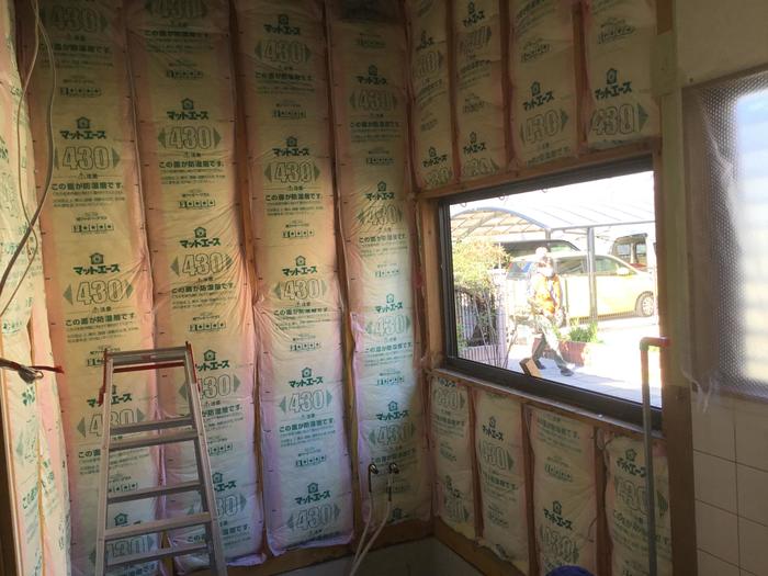 解体工事後、組付前に断熱材を取り付けました。
