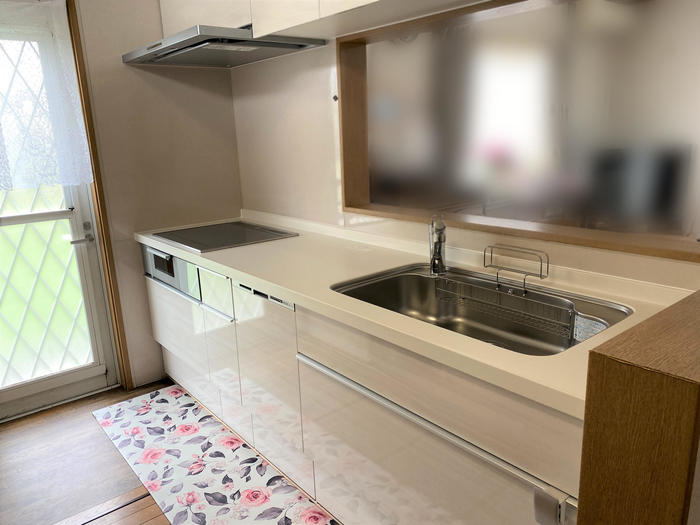【人造大理石トップ】は調味料や洗剤などが浸透しにくいため、変色や変質がほとんどありません。耐久性にも優れています。シンクはお手入れがしやすく、シンクまわりがキレイに片付く大きなポケット付きの【スキットシンク】です。