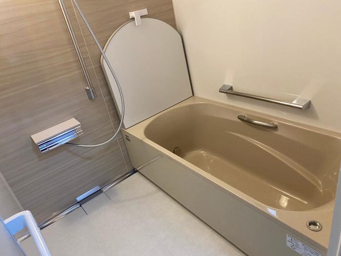 洗い場の面積が広くなったので、以前より圧迫感のない浴室になりました。 床は傷つきにくく、滑りにくい磁器タイルです。 高断熱浴槽で浴槽内のお湯の温かさが保たれ、さらに、浴室は全体を包み込む保温材で完全防備されているので、温かいままバスタイムを楽しめます。寒い時期の憂鬱な寒さを軽減できます。