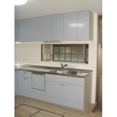 造り付け作業台があり動き辛い。明るいキッチンにしたいとのご要望でした。キッチンの配置・使い勝手を一緒に考え、ご要望に沿ってご提案致しました。リフォーム後はL型の明るいキッチンになりました。「LIXIL シエラ」