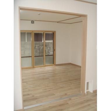 開放的なLDKの窓に内窓を設置し、ネコちゃんの部屋の行き来のため、壁面に専用の開口を設置。ドアの開け閉めをせずに自由に動けるよう提案致しました。室内のダーク調のフローリングやドアを明るい色調に取替えしました。光熱費も削減できたと報告を受けています♪