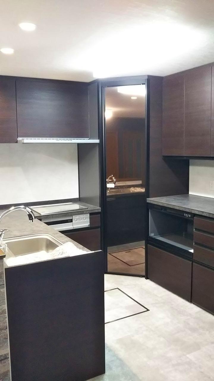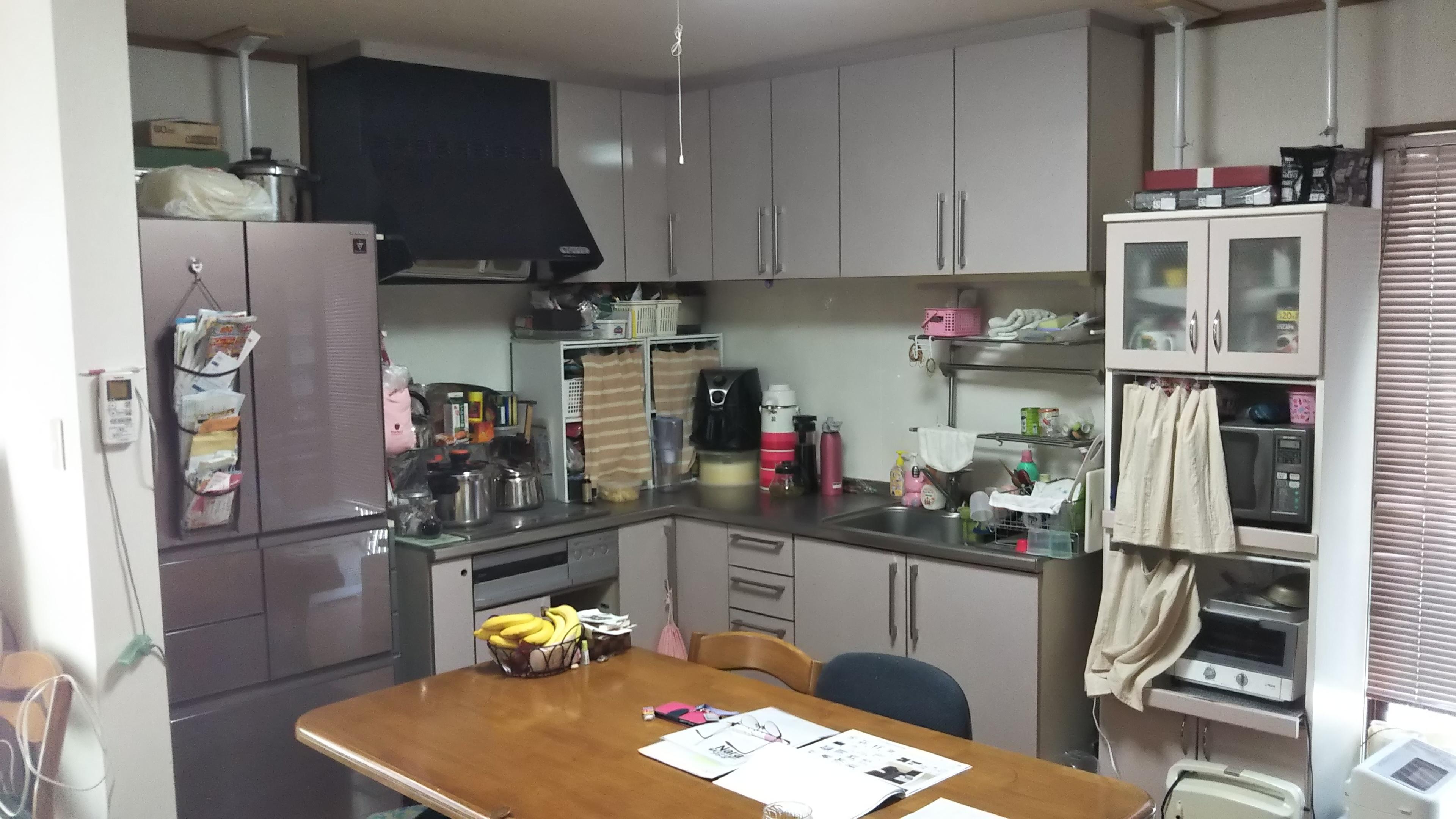 お孫さんが誕生されるまでにキッチンを奇麗にしたいのがきっかけでした。より収納が充実し、統一感のある落ち着いた雰囲気のキッチンをご要望でした。