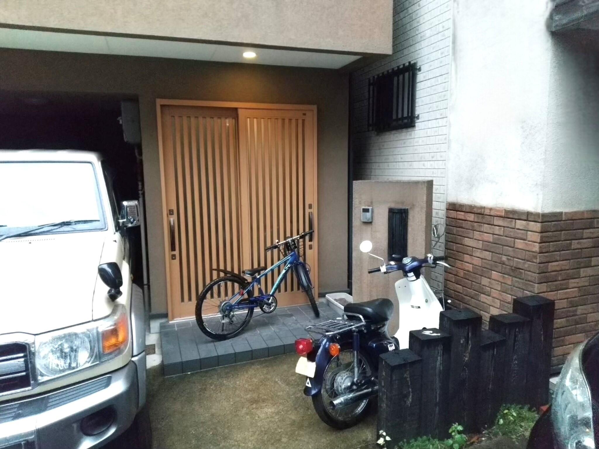 玄関先の門柱が邪魔で原付バイクや子供たちの自転車が停めずらいので門柱をなくしてスッキリしてサイクルポート建ててほしいとのご依頼。