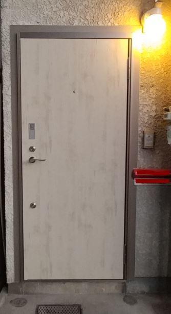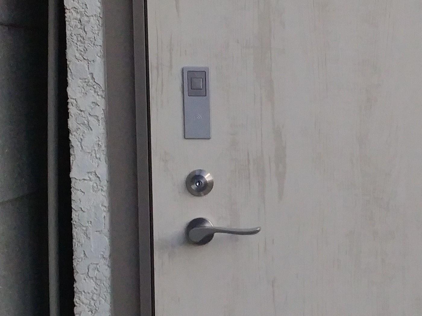 玄関ドアを最新式のカザスプラス付に交換。 鍵を入れる事無く、スマホやカードをカザスだけで鍵を開けたり ロックしたり出来ます。
