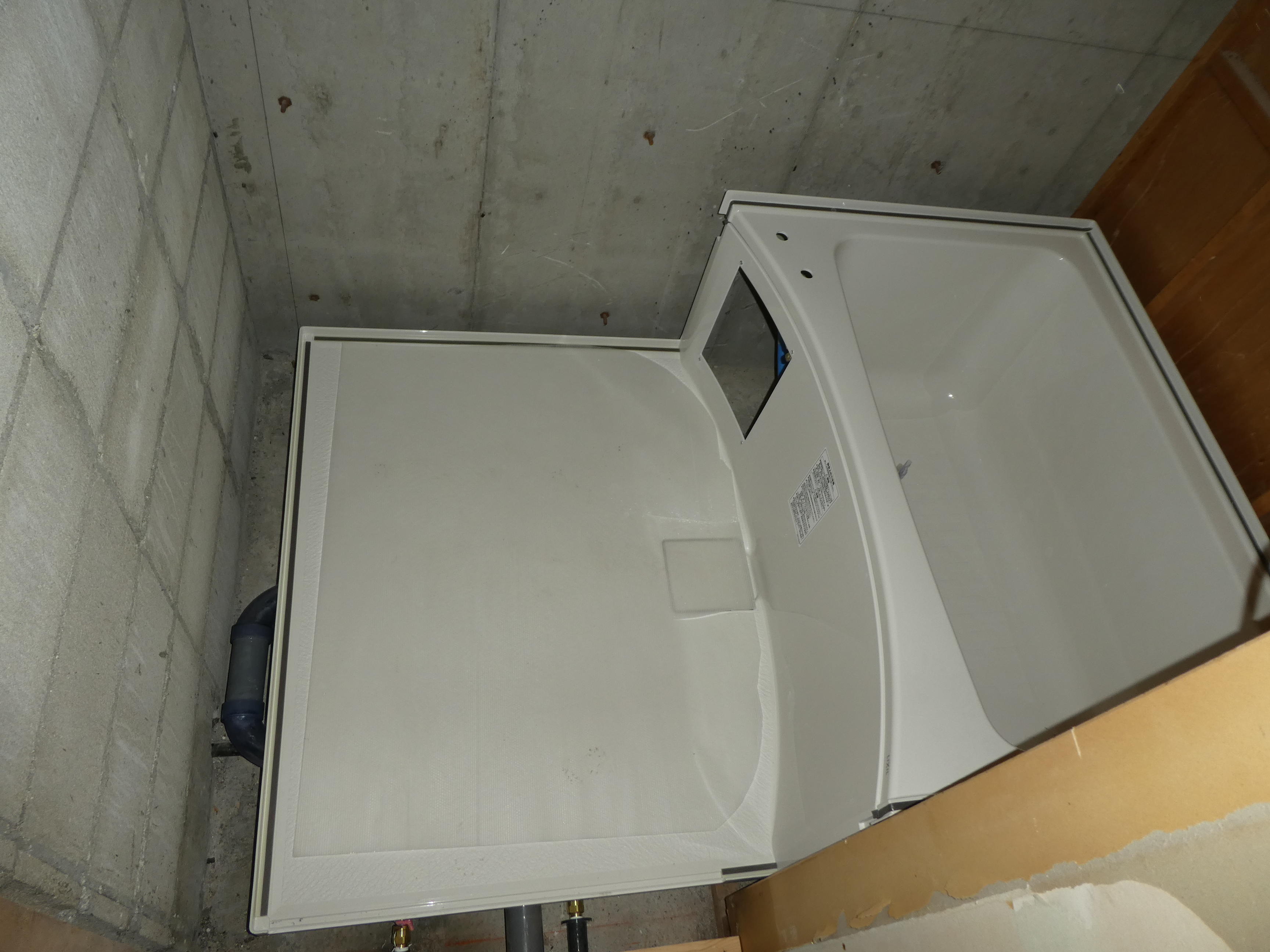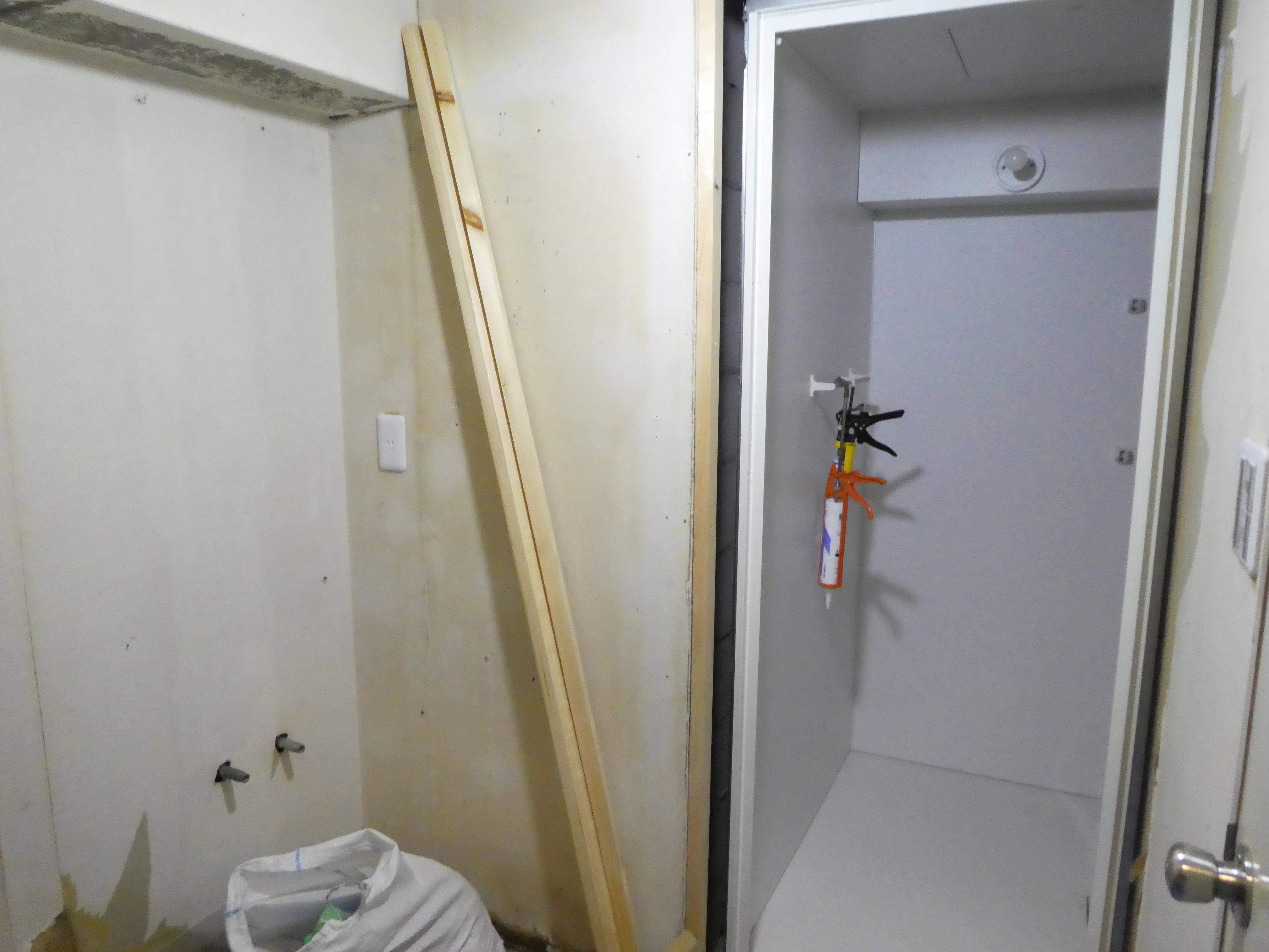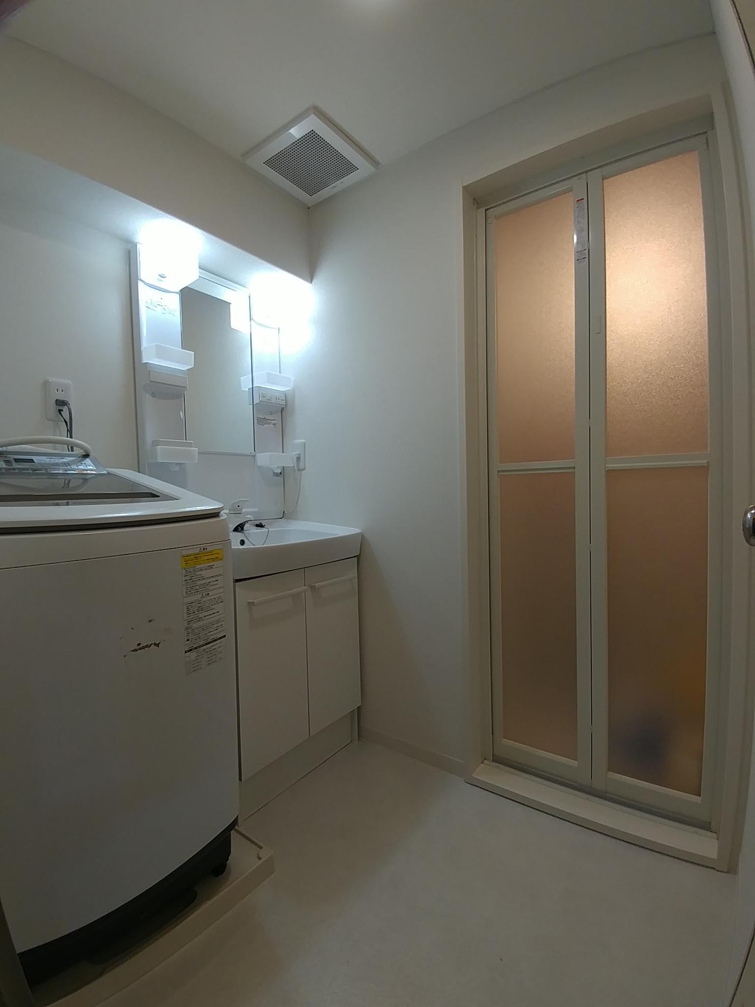 ご依頼から施工完了のご希望日まで1ヶ月弱と、非常にタイトな状況でしたが、無事工期内に完了しました。 換気扇と浴室ドアの故障により、湿気とカビ臭が充満していたのが解消され、明るく清潔感のある空間に生まれ変わりました。 洗濯機の向きを正面から使えるように変更したので、使い易さがUPしました。