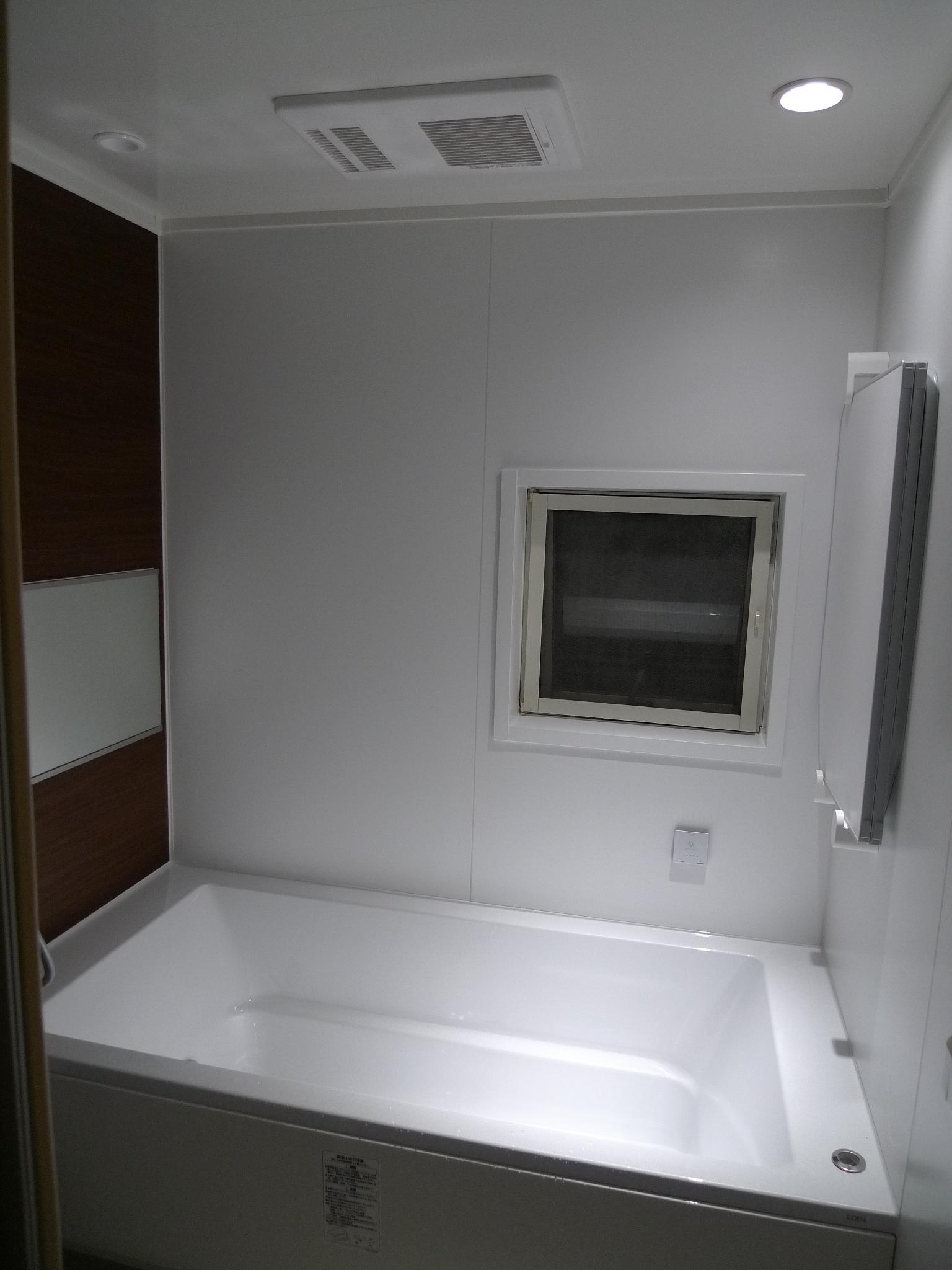 1616サイズのユニットバスの交換工事ででした。 お風呂内でスマホや読書をされるとの事でしたので、リラクゼーション照明システムをオプションで追加致しました。 さらに、風呂フタをオプションの3点式にする事でフタが頭に当たらず、足を伸ばしリラックスした姿勢が取れて気持ちが良いと思います。 一日の疲れを癒す浴室が新しくなり、よりリフレッシュ出来るようになりました。